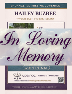 Hailey Buzbee is a 17-year-old missing juvenile who was last seen in Fishers, Indiana. Hailey Buzbee is missing and considered endangered after disappearing late on January 5 or in the early morning hours of January 6, 2026.
